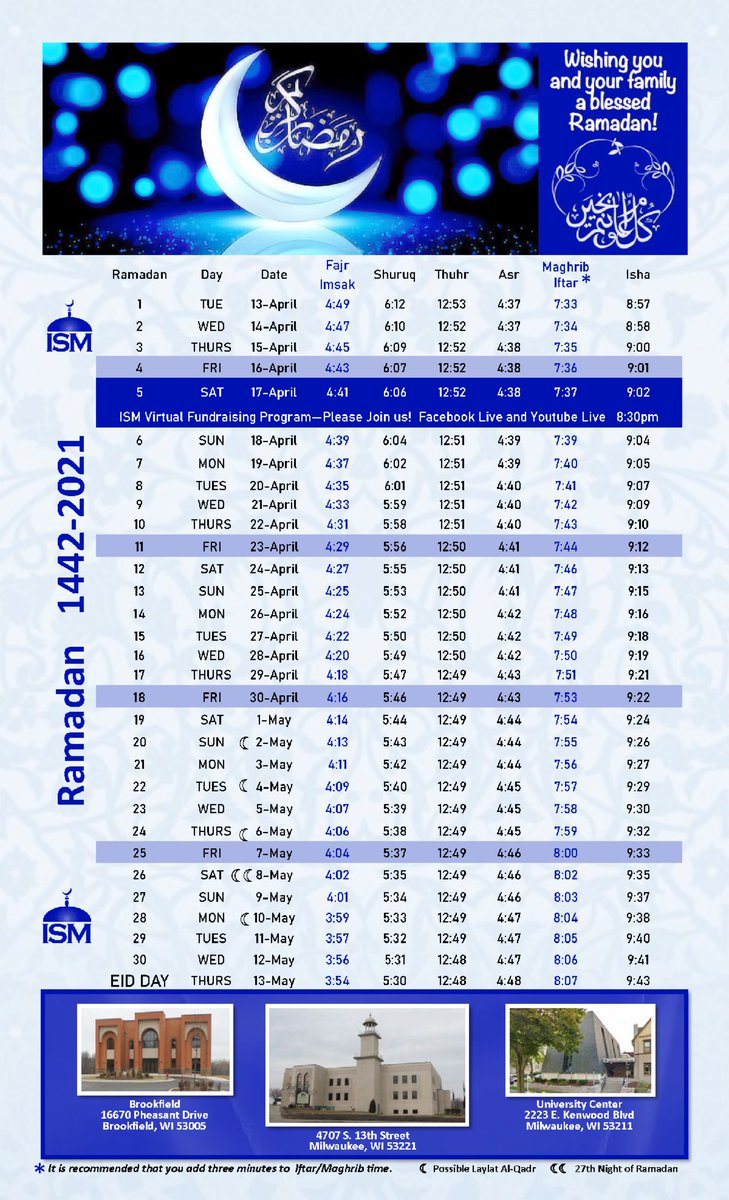 Ism Milwaukee Ramadan Calendar , Ism Milwaukee Ramadan Calendar – The table above is the complete Milwaukee Ramadan Calendar 2024. Here you can see the Sehri timing and iftar timing in Milwaukee from the first to the last Ramadan fasting day. The Islamic and . The table above is the complete Quetta Ramadan Calendar 2024. Here you can see the Sehri timing and iftar timing in Quetta from the first to the last Ramadan fasting day. The Islamic and Gregorian . Ism Milwaukee Ramadan Calendar Source : m.facebook.com Islamic Society of Milwaukee on X: “Click here to download a PDF Source : twitter.com Islamic Society of Milwaukee | Milwaukee WI Source : www.facebook.com Islamic Society of Milwaukee | Ramadan is quickly approaching Source : www.instagram.com Copy of RAMADAN CALENDAR 2023 4 Source : www.ismonline.org Islamic Society of Milwaukee | Milwaukee WI Source : www.facebook.com Islamic Society of Milwaukee Source : www.ismonline.org Islamic Society of Milwaukee | Milwaukee WI Source : www.facebook.com Islamic Society of Milwaukee on X: “Click here to download a PDF Source : twitter.com Islamic Society of Milwaukee Source : www.ismonline.org Ism Milwaukee Ramadan Calendar Islamic Society of Milwaukee Assalamu Alaikum & Ramadan Mubarak : To avoid losing sight of business needs and to be able to act easily, Fujitsu offers an ideal solution with the FUJITSU Infrastructure Management (ISM) software. ISM simplifies the IT operations and . There are five main duties of a devout Muslim. One of them is to observe a month long fasting during the month of Ramadan. This is the ninth lunar month of the Islamic calendar. During this month, . Calendar